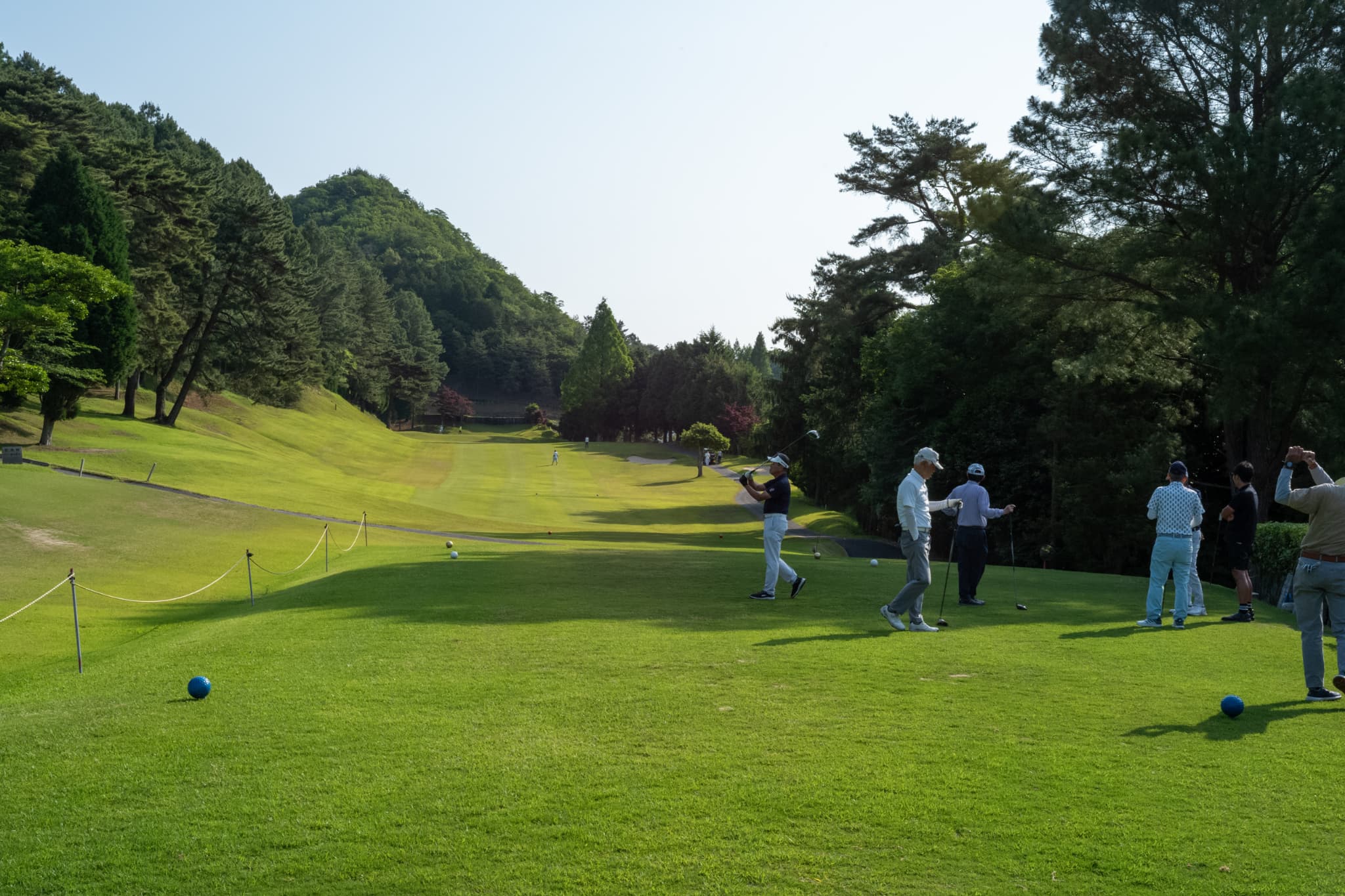 同窓生の願いが届いたのか、前日までのぐずついた天気はどこへやら。終日雲一つない晴天に恵まれ、会長をはじめとする193名がプレーを楽しみました。